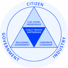 * Deze missie benadert Public SPACE vanuit een bijzondere visie op het publieke debat en domein, zoals samengevat in deze driehoek. Die hebben we in de jaren 90 ontworpen en gelanceerd in veel toenmalige privatiseringsdebatten.